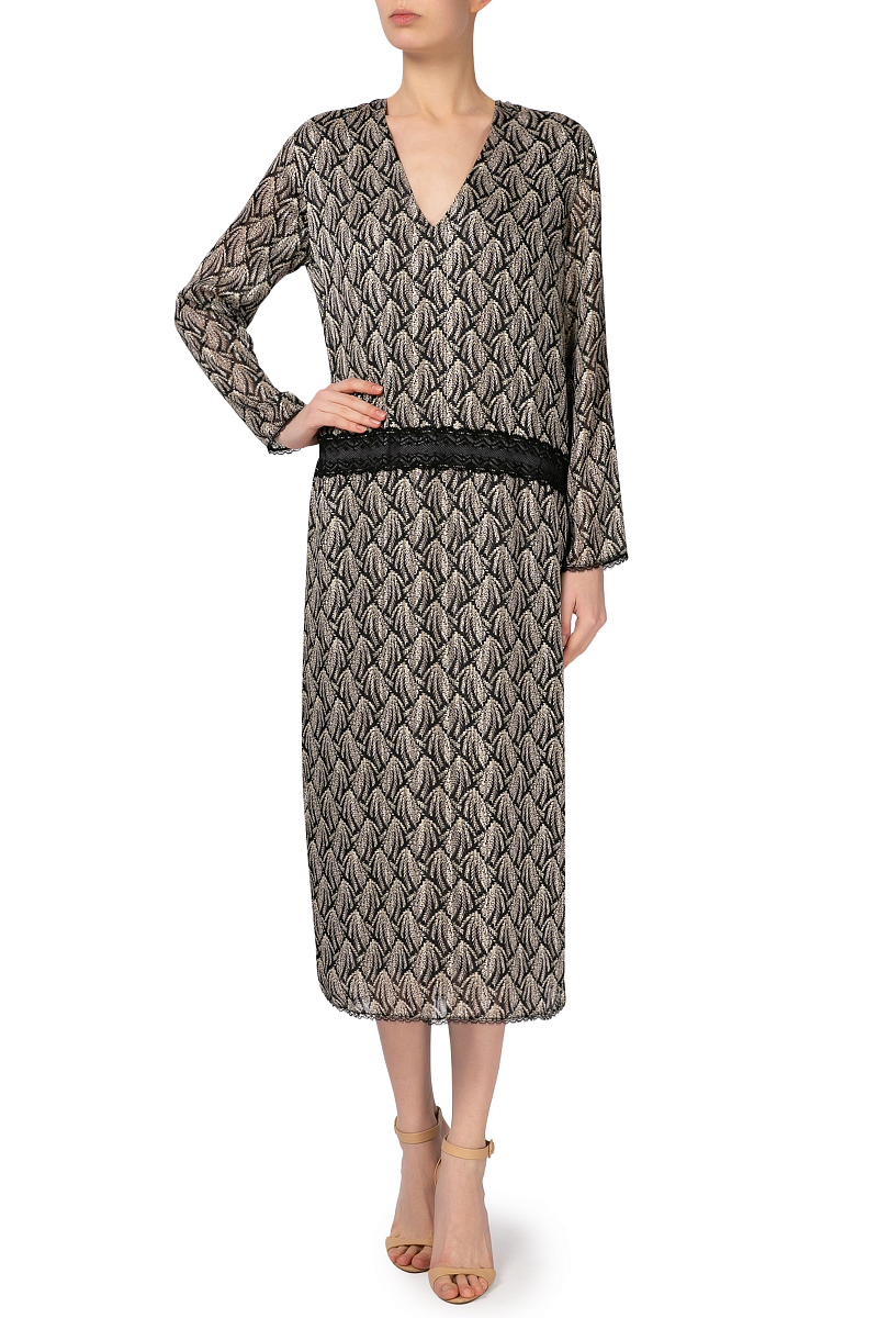 Платье российского бренда Made For Attention, коллекция Весна 2022. Состав: 100% полиэстер; декор – 100% шелковое кружево. Параметры модели: 178/83/62/90, надет размер S.