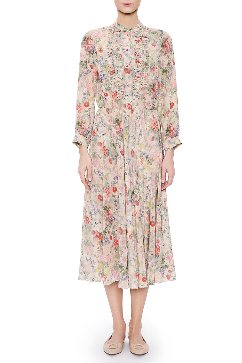 Платье российского бренда Loive, коллекция Весна-Лето 2019. Состав: 100% шелк. Параметры модели: 177/87/60/90, надет размер 42 RU.